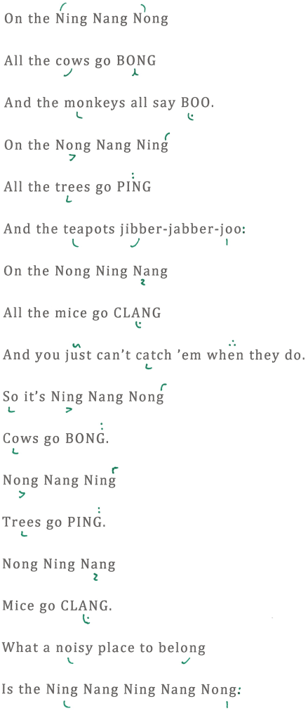 But, just to tide my beloved audience over until I have more time – and with full regard to the dignity of the rabbinate – I’ve decided to set that great epic poem On the Ning Nang Nong by Spike Milligan to leyning trop.