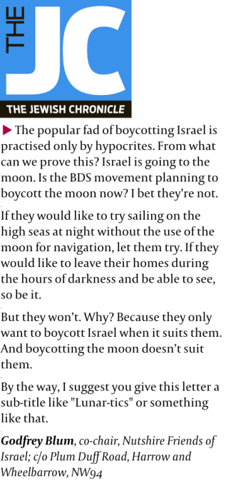 On which topic, a rather interesting letter appeared in the Jewish Chronicle last week…
