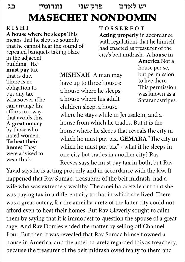 And just in case you weren’t sure of the halachah surrounding the current ministerial tax controversy, a previously lost page of Talmud explains all: