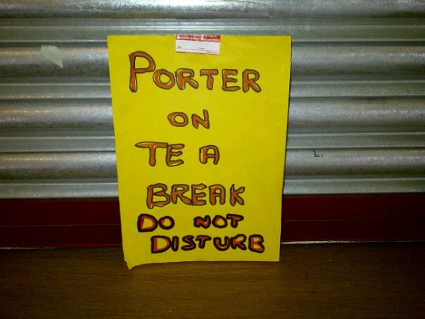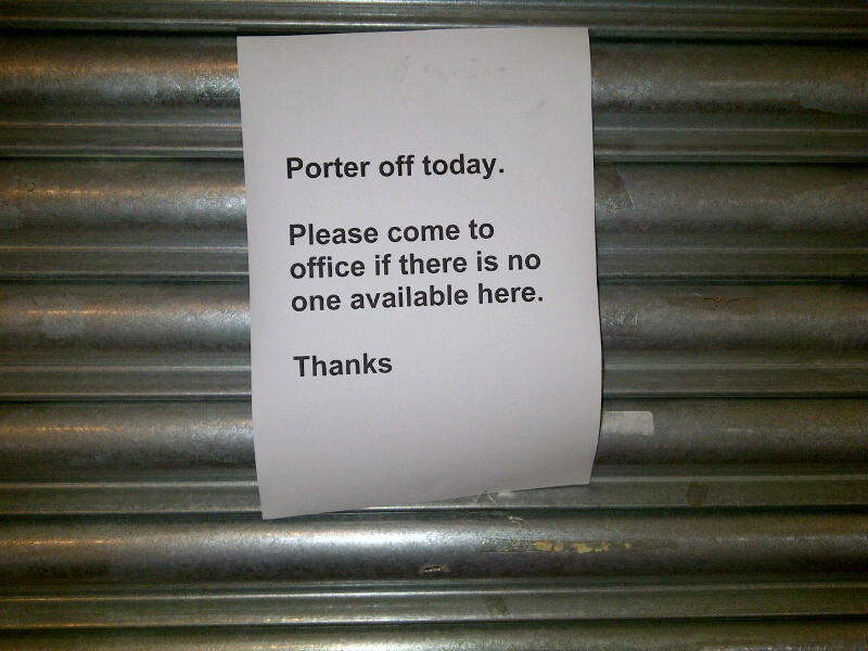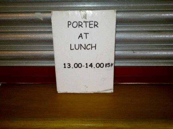 On Thursday, The Guardian had a feature on a typical day of a university Porter. Given its headline of “A Working Life” I knew straight away it couldn’t possibly be about my Porter here in Sussex, who on that very day added the following to his collection of signs: