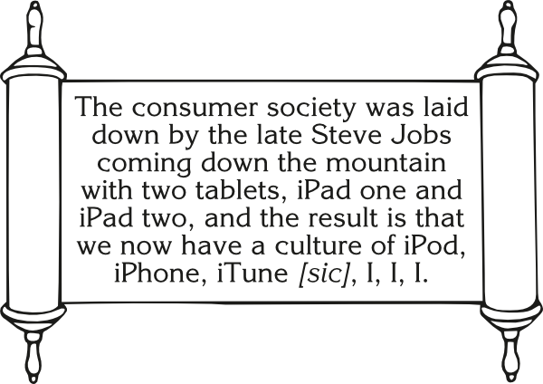 Rabbi Jonathan Sacks wins the De Mortuis Nil Nisi Bonum Attacking the Dead Prize for blaming all society’s ills on well-known heretic Steve Jobs: